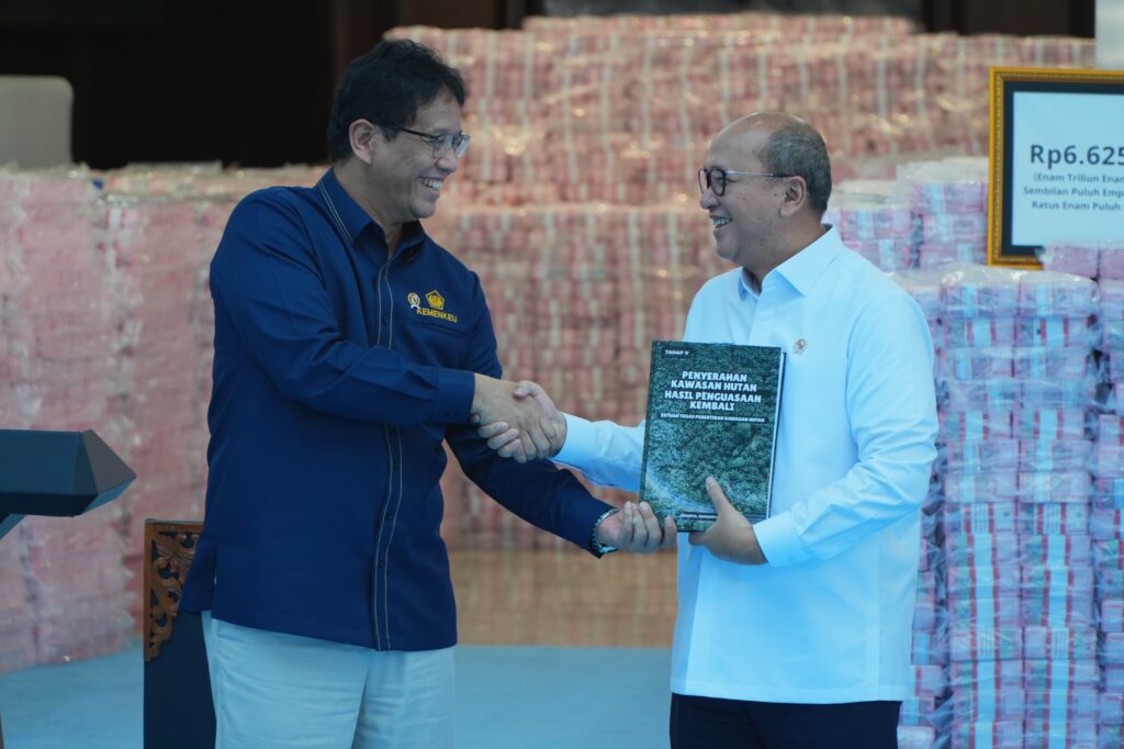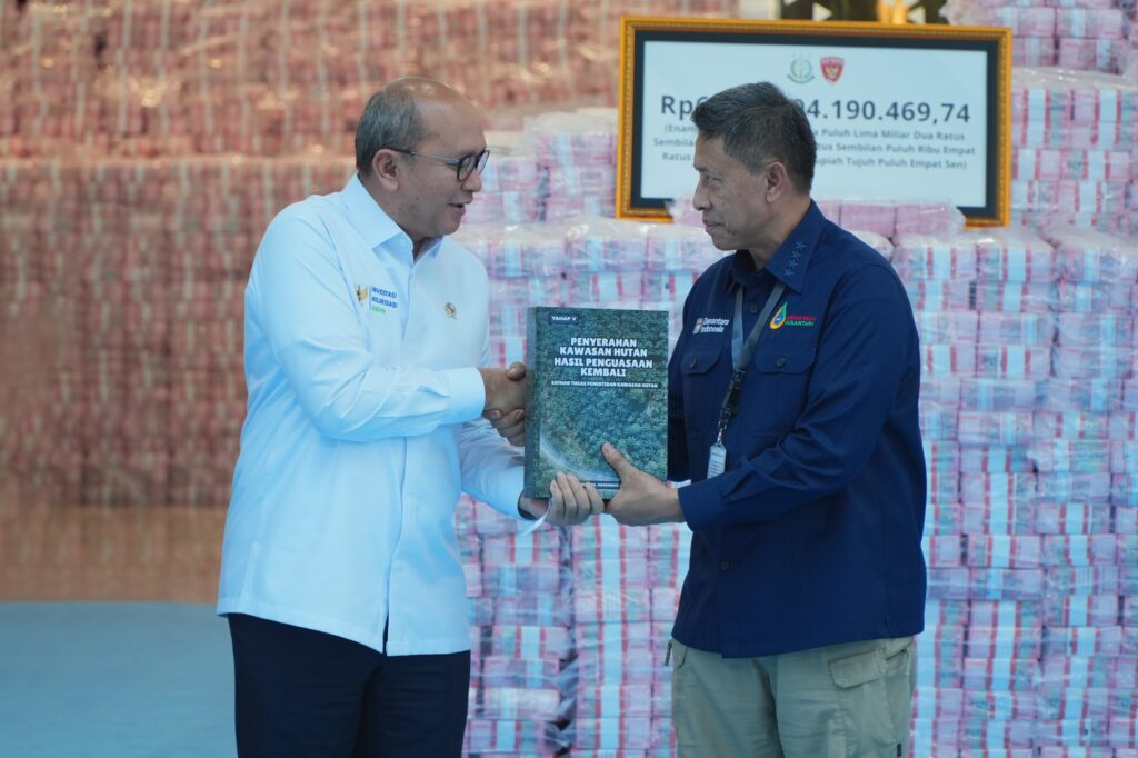 Selain penyerahan lahan, acara tersebut juga menandai penyerahan uang hasil penyelamatan keuangan negara sebesar Rp6.625.294.190.469 kepada Menteri Keuangan. Dana tersebut berasal dari dua sumber utama, yakni penagihan denda administratif kehutanan senilai Rp2,34 triliun dan pemulihan kerugian negara dari perkara tindak pidana korupsi sebesar Rp4,28 triliun.