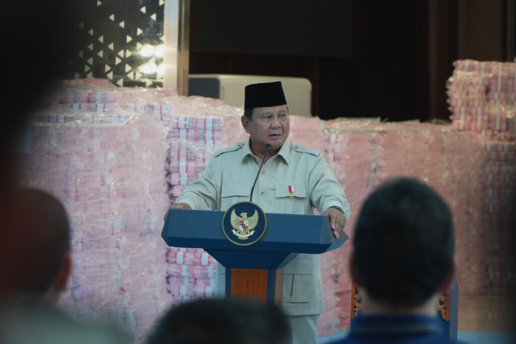 Presiden Prabowo Subianto memberikan sambutan pada acara penyerahan laporan capaian hasil Satuan Tugas Penertiban Kawasan Hutan (Satgas PKH) dan penyelamatan keuangan negara tahun 2025 di Gedung Utama Kompleks Kejaksaan Agung RI, Jakarta, pada Rabu, (24/12) (Foto: Divkom/Dede Kurniawan)