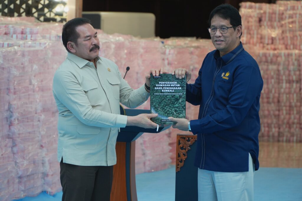 Selaku Ketua Pelaksana Satgas Penertiban Kawasan Hutan (Satgas PKH), Jaksa Agung menyerahkan kebun kelapa sawit sebelumnya dikuasai 124 subjek hukum di enam provinsi dan dinyatakan melanggar ketentuan perundang-undangan kehutanan.